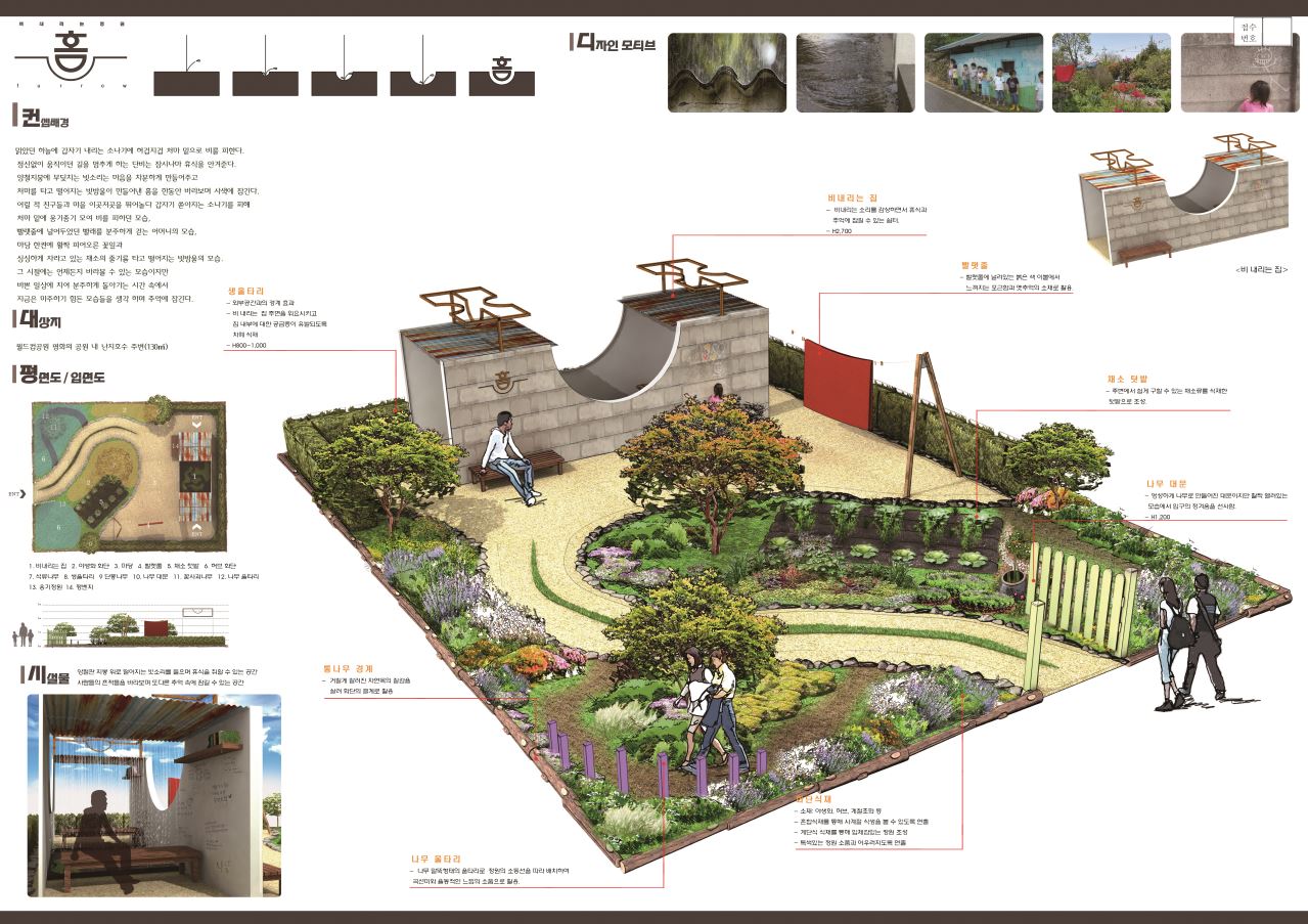 작품명 비 내리는 정원-홈(furrow) 작가명 김기범 작품소개 지금은 접하기 힘든 모습이지만 근심걱정 없었던 어린 시절의 시골집의 모습을 회상하며 하늘에서 떨어지는 빗방울의 모습조차 바라볼 시간도 없이 바삐 생활하는 현대인들에게 잠시 휴식을 취하며 사색을 즐길 수 있는 정원이 있는 시골집을 모티브로 공간을 디자인하였다. 작가소개 김기범 코리아가든쇼 1, 2회 입선 작품설명 지금은 접하기 힘든 모습이지만 근심걱정 없었던 어린 시절의 시골집의 모습을 회상하며 하늘에서 떨어지는 빗방울의 모습조차 바라볼 시간도 없이 바삐 생활하는 현대인들에게 잠시 휴식을 취하며 사색을 즐길 수 있는 정원이 있는 시골집을 모티브로 공간을 디자인하였다. 작품조성과정 조성과정 최종완성 작품판넬