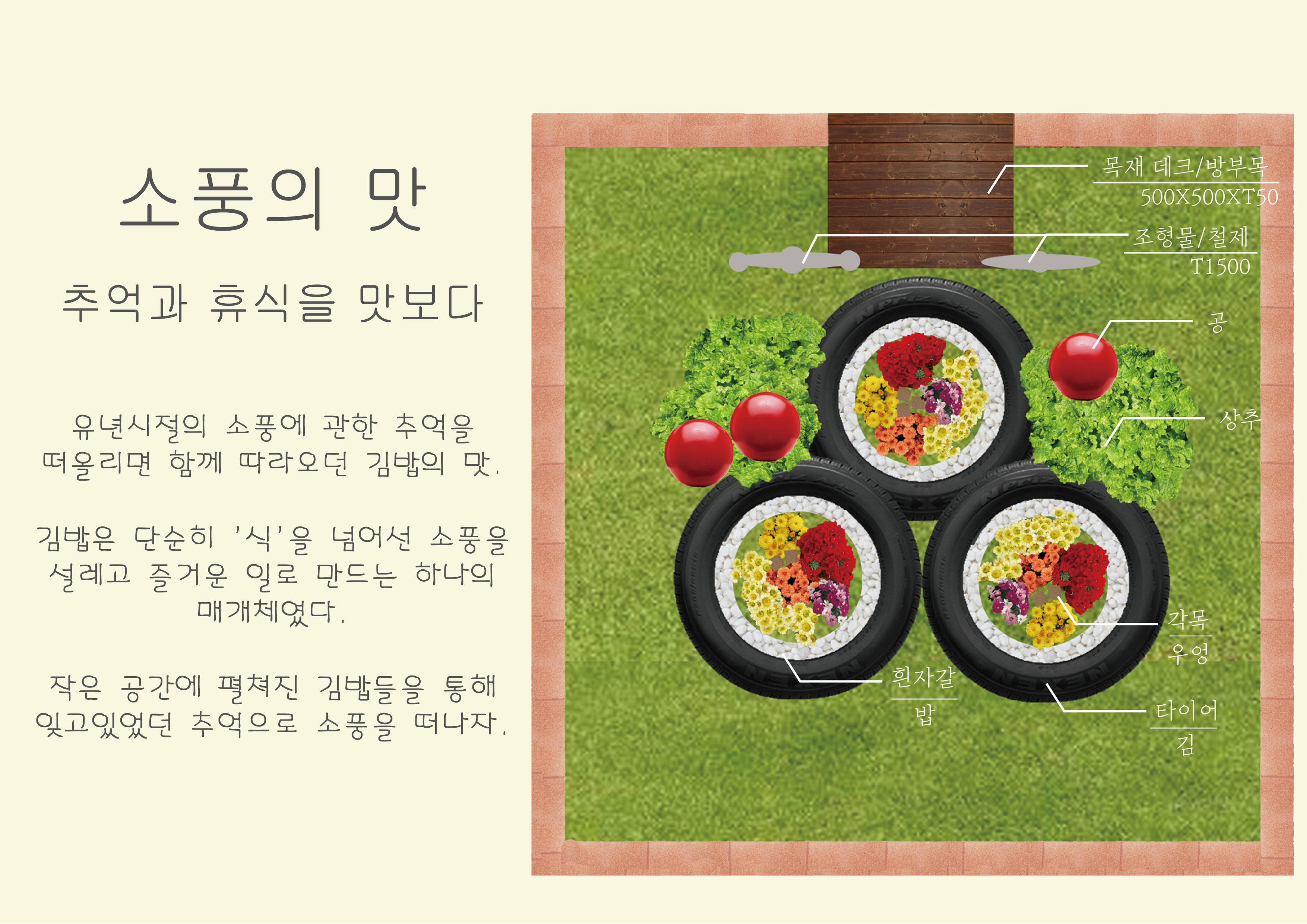 유년 시절, 소풍에 관한 추억을 떠올리면 항상 뒤따라오는 김밥의 맛. 김밥은 단순히 '食'이 아닌 소풍에 설렘과 즐거움을 부여하는 존재입니다. 작은 공간에 펼쳐진 김밥들이 안내하는 추억과 공감 속으로 또다른 소풍을 떠나 보는 건 어떨까요?