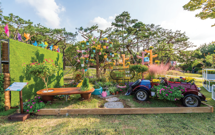 - 재활용 타이어, 장식 자동차 등을 활용한 정원