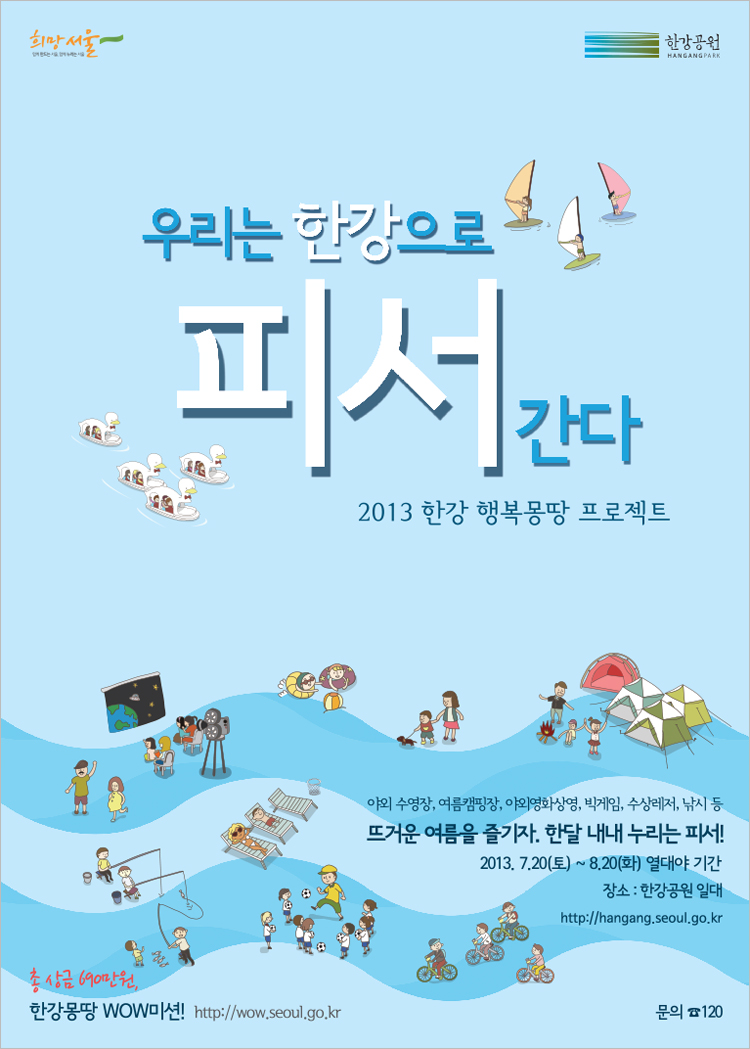 오래전부터 여름이 오면 강 수욕, 물놀이, 뱃놀이로 서울 시민의 인기 피서지였던 한강! 올해의 한강도 해가 떠도 달이 떠도 누구나 즐길 수 있는 프로그램이 가득한 가성비 좋은 피서지가 되어 여러분을 기다립니다.