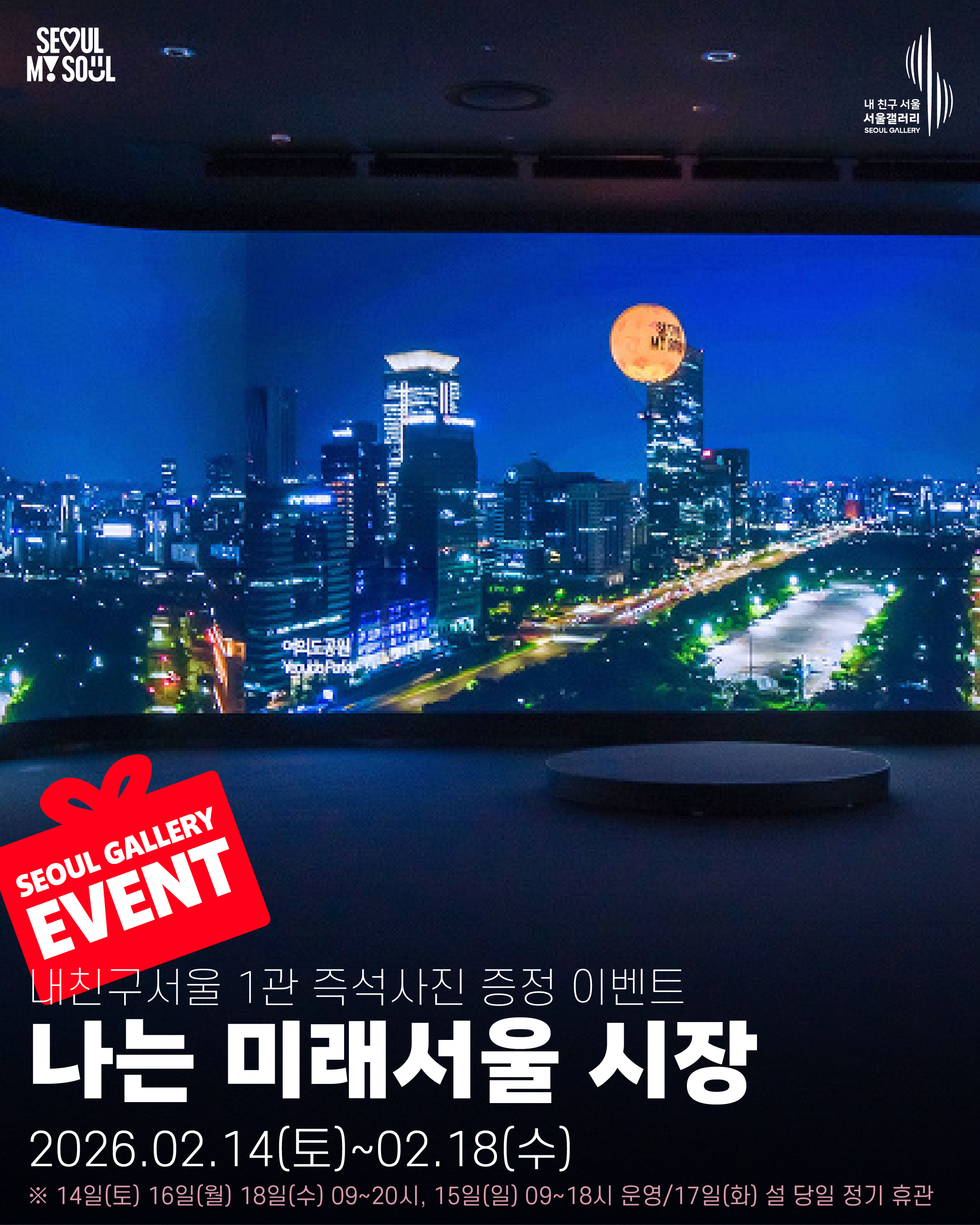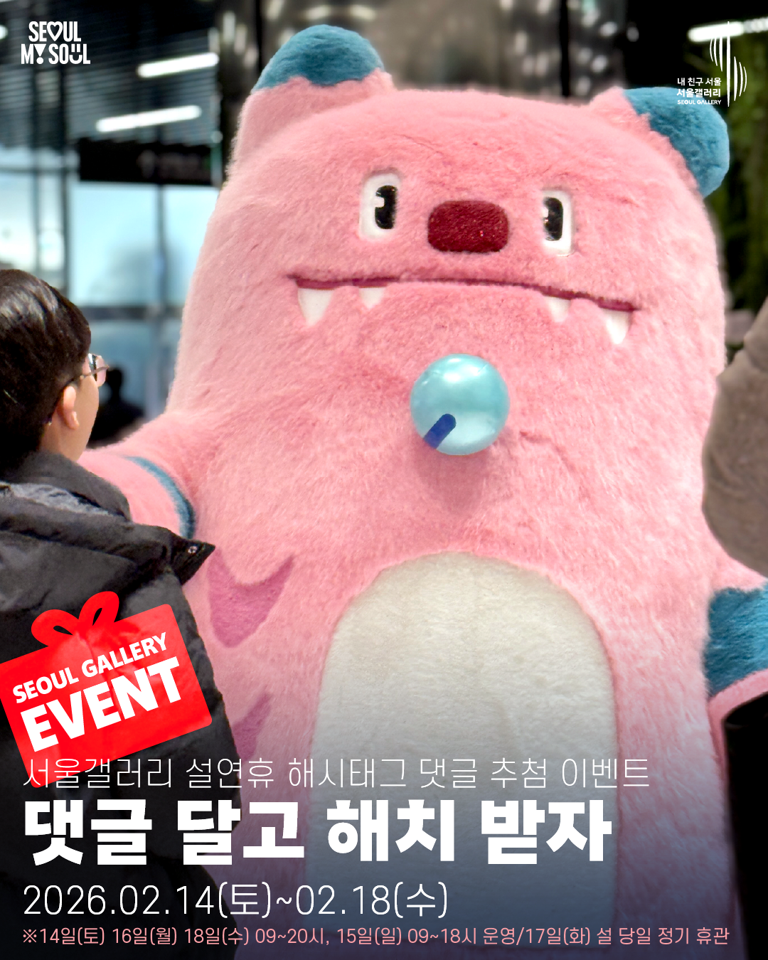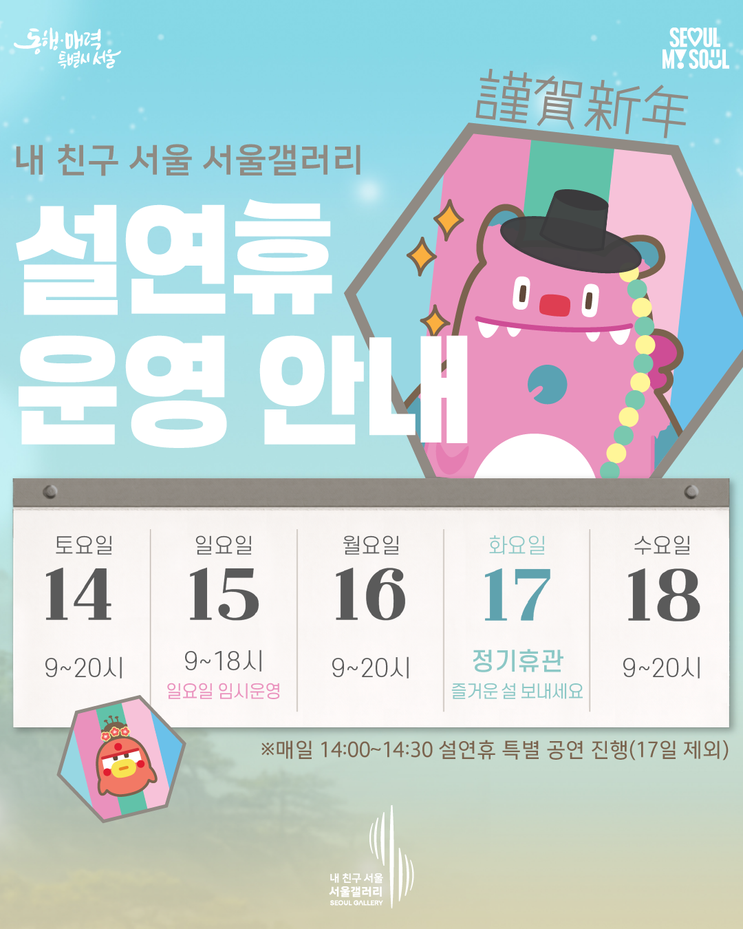 내 친구 서울 서울갤러리는 2026년 2월 14일(토)부터 18일(수)까지(정기휴관일인 설 당일 17일 제외) 설 연휴 특별 프로그램을 진행합니다.